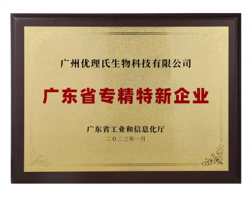 近日,经过企业申请、地市初审、省厅复核等程序,广州优理氏生物科技有限公司荣获2022年“广东省专精特新企业”称号!