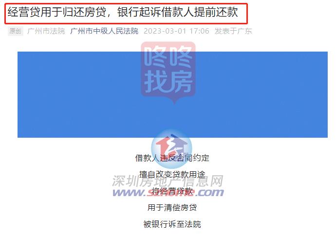 而广州也有同样的情况,而从广州市中级人民法院这起案例可以了解到,经营贷用于归还房贷法院也是不支持的,一旦被发现,需要在判决生效短期内偿还,可以说也是有很大的风险。