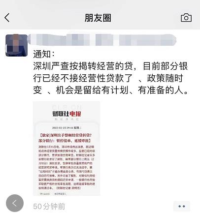2月15日,据财联社消息称,深圳市场传出消息,因近期低成本经营贷置换房贷操作增多,监管已经约谈部分银行,要求加强合规审查。据了解,的确有部分银行接到要求,暂停审批存量房贷用户的经营贷转贷申请。有银行表示已无法接单,要“过段时间”才能办理此类业务,有银行则表示目前仍可接单。