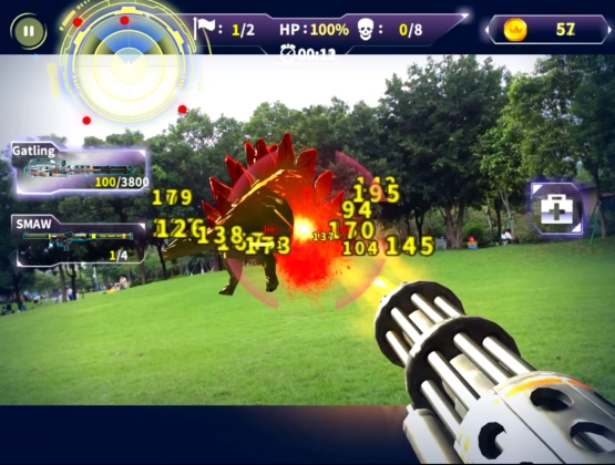 新梦想AR游戏枪提供现实与虚拟的混合交互,比如在我们射击真实的墙壁,手机屏幕中看到的真实的墙壁会出现破裂等现象,当墙壁完全破碎后,会有一只机器鸡从墙壁后的虚拟空间中走出来。也可以提供一种基于位置距离的交互,打造我们想要的五彩世界。这种创新的交互方式能够让孩子有很强的参与感,激发孩子的兴趣,主动去学习。