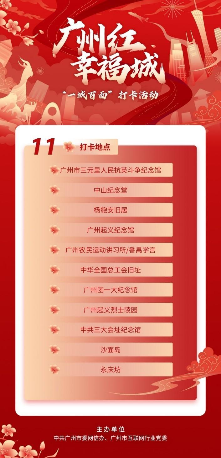本届“一城百面” 打卡活动,旨在进一步擦亮广州红色文化品牌,推动广州文旅行业复苏和发展,将由“一城百面”挑战赛、幸福广州“红人游”、促消费直播日三大板块组成。