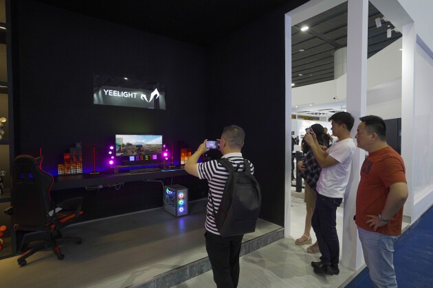 随着电竞产业的快速发展,一批依托电竞而兴起的市场正在蓬勃发展,背后蕴藏着声光行业的巨大机遇。Yeelight Fun系列是易来针对电竞酷玩娱乐照明的全新产品线,此次建博会是其在国内首次亮相。Yeelight Fun系列围绕电竞和酷玩需求为用户打造专属电竞房智能照明场景,拓展智能照明的娱乐性和酷玩性。氛围感灯光有节奏地闪烁、跳动、变色,呈现出的超越现实的未来感与科技感,交错的光影和饱满的声音给观展用户带来了十足的沉浸体验。