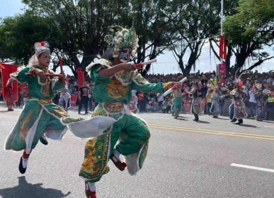 民俗文化巡游包括由107个脸涂油彩扮成英雄好汉的队伍组成史上最全英歌舞阵容,完整呈现中华“战舞”磅礴气势,还有“潮”味十足的蜈蚣舞、双龙舞、双咬鹅舞、布马舞、麒麟舞、醒狮等潮汕传统民间动物舞蹈表演,以及潮剧、潮乐表演等展示方阵,让市民游客近距离观赏“潮”味满满的巡游嘉年华。