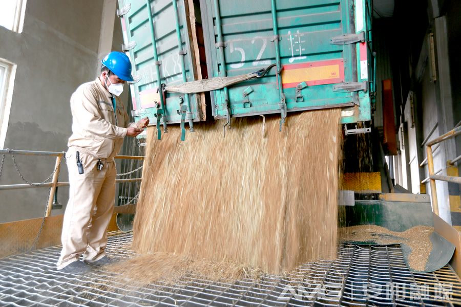 大门前,工作人员对来粮先取样,再进行品质、质量、卫生等方面的检验。符合入库标准后,车辆缓慢前行过磅称重,随后驶入工作塔。随着设备的起降,金的麦粒如瀑布般从车斗里倾泻而下,流入卸粮坑内,经过多层清理除杂后,粮食被送到指定的筒仓,等待下一步处理。“目前,我们正抢抓作业,迎接新粮入库。现在每日入库小麦有2000多吨,到高峰期将达到三四千吨。”益海嘉里(安阳)食品工业有限公司相关负责人介绍。