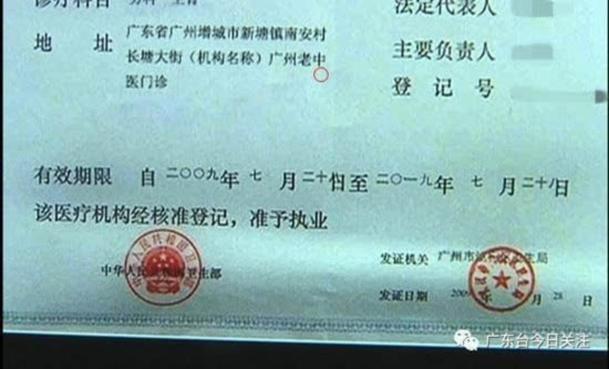 “根据那张所谓的“执业许可证”,我们找到来新塘镇南安村长塘大街这里。广州专业抓龙筋但走遍整条街也看不到有什么老中医门诊。据了解,这里唯一的一间正规诊所也早在一年多之前就搬走了。”。