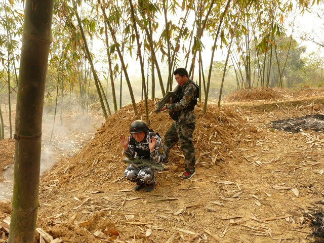 其中最好玩的莫过于打室内反恐野战,基地专门设置了一栋废弃楼房专打室内反恐野战,特别带劲儿。因为楼房里面的所有房间都是直接相通的,走在里面让你感受到危机四伏,现场战斗的氛围相当紧张刺激。