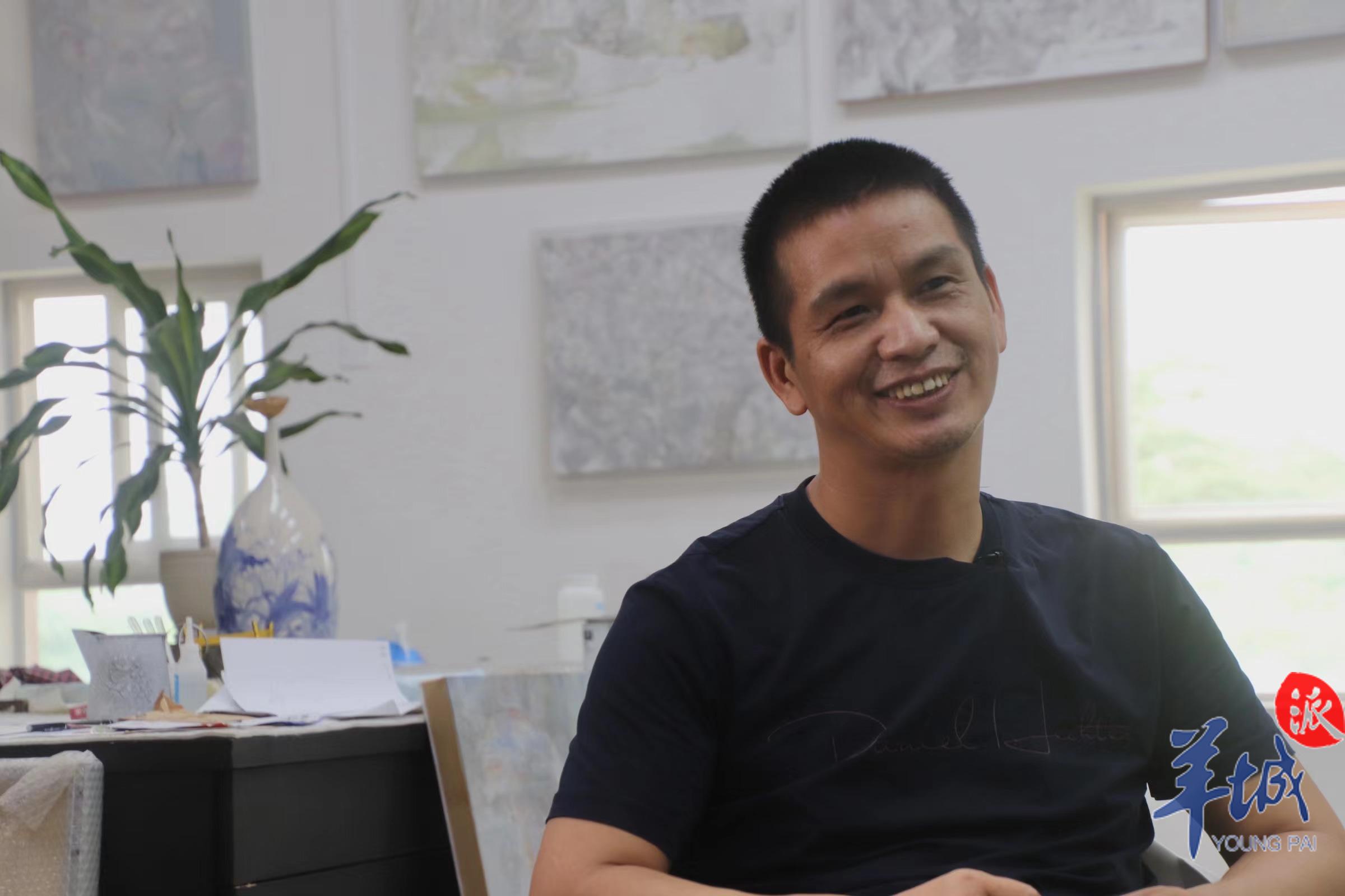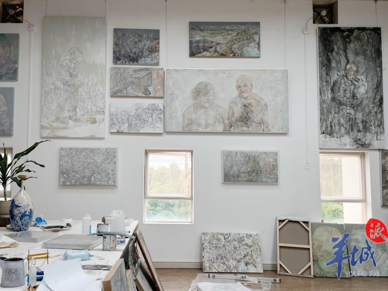 罗奇的工作室位于广州文学艺术创作中心,位于小谷围广州大学城的地理中心圈,湖水和山林掩映,随处可见他钟爱绘画的野草。