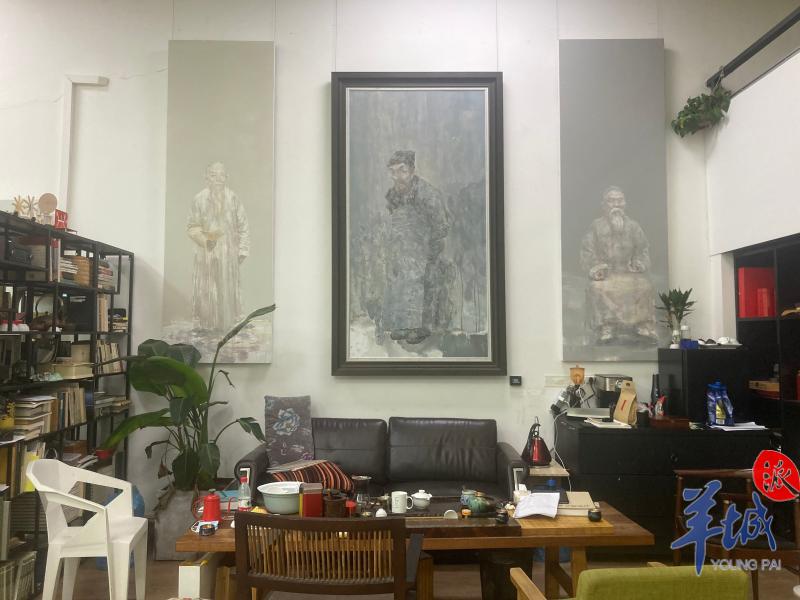 多年来,罗奇的学人系列创作仍在继续。在工作室的墙面上,悬挂着他新近绘制的岭南画派宗师居巢、居廉画像,而在两人之间有一张更大尺幅的人物肖像,则以一位无名铁匠为主角。