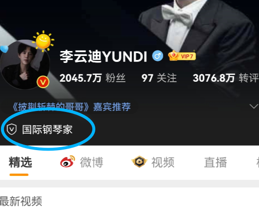 值得注意的是,李云迪的微博此前认证为:国际钢琴家、重庆政协、全国青联、香港青联。警方通报后,仅保留了“国际钢琴家”。