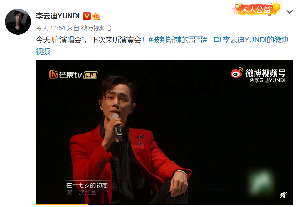 昨天(10月21日)中午12时54分,李云迪还在自己的个人微博上,给参与的节目《披荆斩棘的哥哥》打CALL:“今天听‘演唱会’,下次来听演奏会!”据悉,李云迪是以“返场哥哥”的身份,重新参与《披荆斩棘的哥哥》的录制。